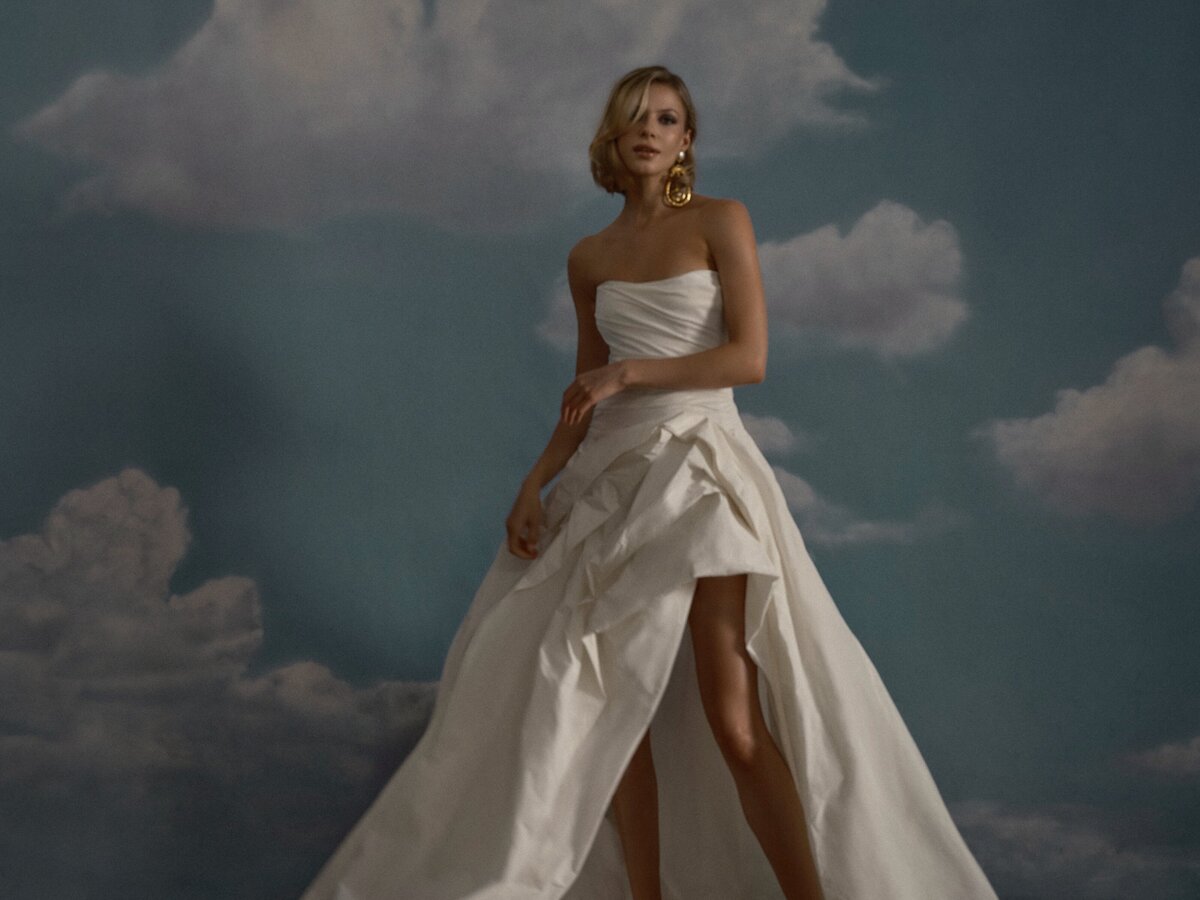 Rose TaffetaDraped Bodice Pleated Pickup Skirtavailable in rose and ivory Made in New York